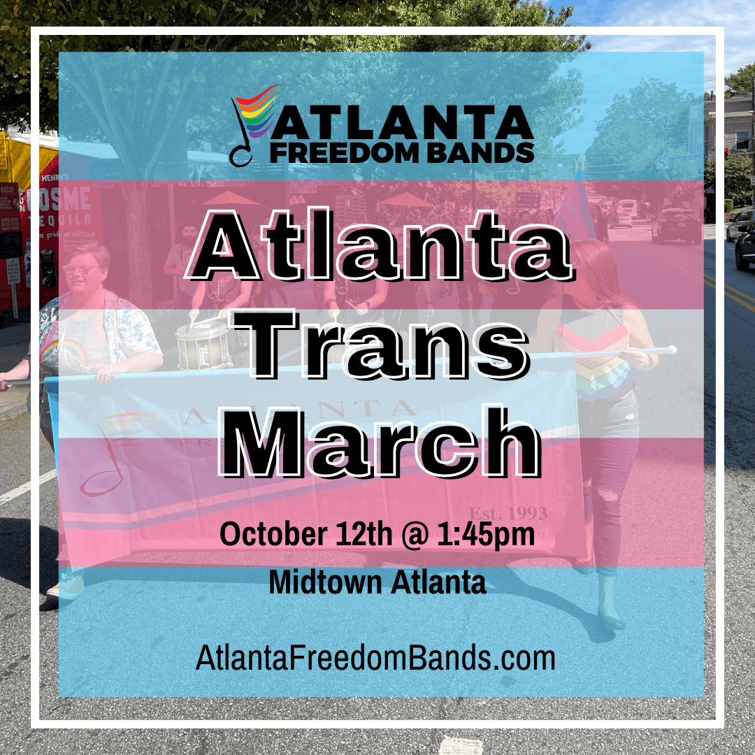 Atlanta Freedom Bands not only supports, but has members that represent every letter of the LGBTQ+ acronym. The AFB Drumline is proud to support our Transgender members, neighbors, and friends in the 2024 Annual Trans March, hosted by the Atlanta Pride Committee.